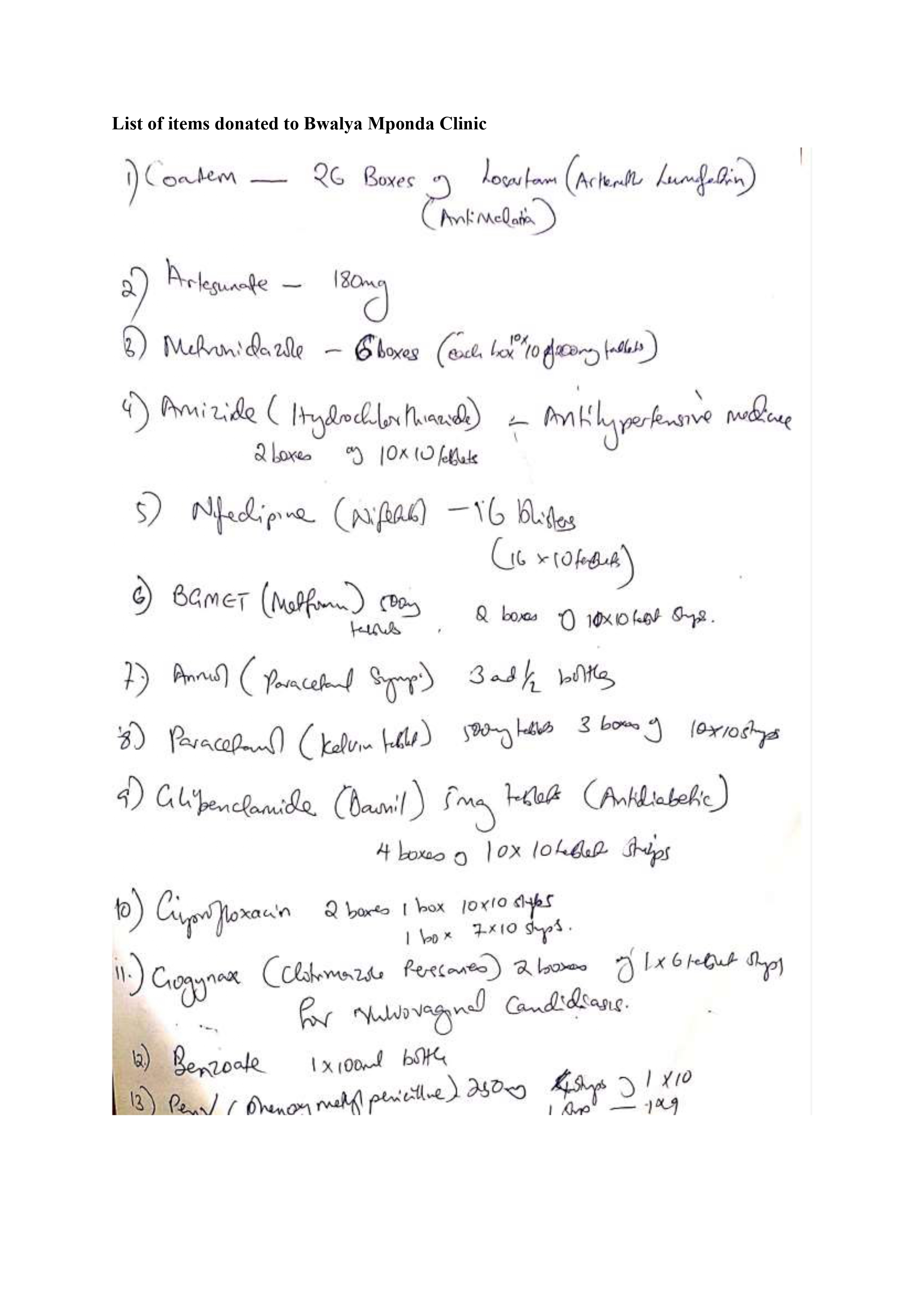 NB: See attachment for list of items donated to the local clinic at the end of the visit.
